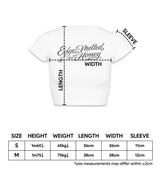 MELTED EDGE CROPTOP - Chiếc áo croptop nằm trong bộ sưu tập Edge Melted in Honey* được thiết kế đơn giản với điểm nhấn của áo nằm ở họa tiết in thấm vải tên collection mặt trước ấn tượng.